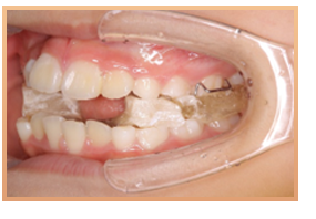 奥歯のところが滑り台のように斜めにカットされているため、顎を閉じるたびに下顎が前方にいきます。